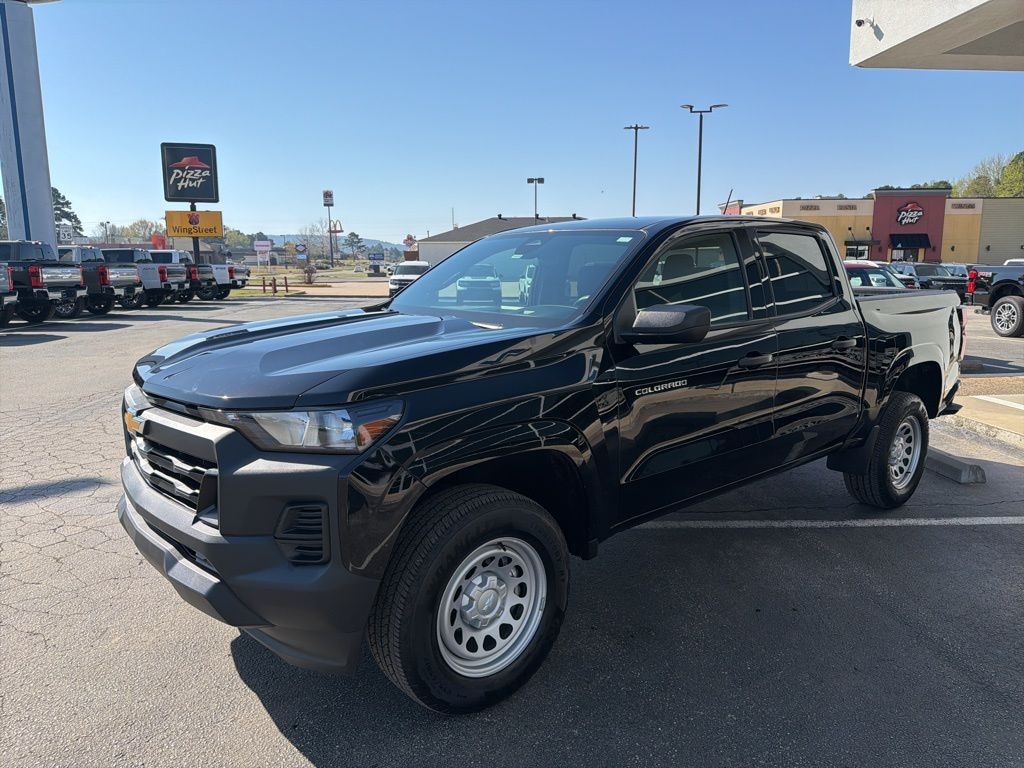 This 2024 Chevrolet Colorado Work Truck in Black comes with the following features: 2.7L Turbo 8-Speed Automatic RWD Preferred Equipment Group 2WT (Automatic Emergency Braking, Chevy Safety Assist, Following Distance Indicator, Forward Collision Alert, Front Pedestrian & Bicyclist Braking, IntelliBeam Automatic High Beam On/Off, and Lane Keep Assist w/Lane Departure Warning), 3.42 Rear Axle Ratio, 4-Way Manual Passenger Seat Adjuster, 4-Wheel Disc Brakes, 6 Speakers, 6-Speaker Audio System Feature, 6-Way Manual Driver Seat Adjuster, ABS brakes, Air Conditioning, All-Weather Floor Mats, AM/FM radio: SiriusXM, Apple CarPlay/Android Auto, Auto High-beam Headlights, Brake assist, Cloth Seat Trim, Delay-off headlights, Driver door bin, Driver vanity mirror, Dual front impact airbags, Dual front side impact airbags, Electronic Stability Control, Front anti-roll bar, Front Bucket Seats, Front Center Armrest, Front wheel independent suspension, Low tire pressure warning, Navigation System, Occupant sensing airbag, Overhead airbag, Panic alarm, Passenger door bin, Passenger vanity mirror, Power door mirrors, Power steering, Power windows, Radio data system, Radio: 11.3" Diagonal Advanced Color LCD Display, Rear step bumper, Remote keyless entry, Security system, SiriusXM Radio, Speed-sensing steering, Split folding rear seat, Steering Wheel Mounted Audio Controls, Steering wheel mounted audio controls, Tachometer, Tilt steering wheel, Traction control, Trip computer, Variably intermittent wipers, Wheels: 17" x 8" Ultra Silver Metallic Steel, and Wireless Phone Projection.