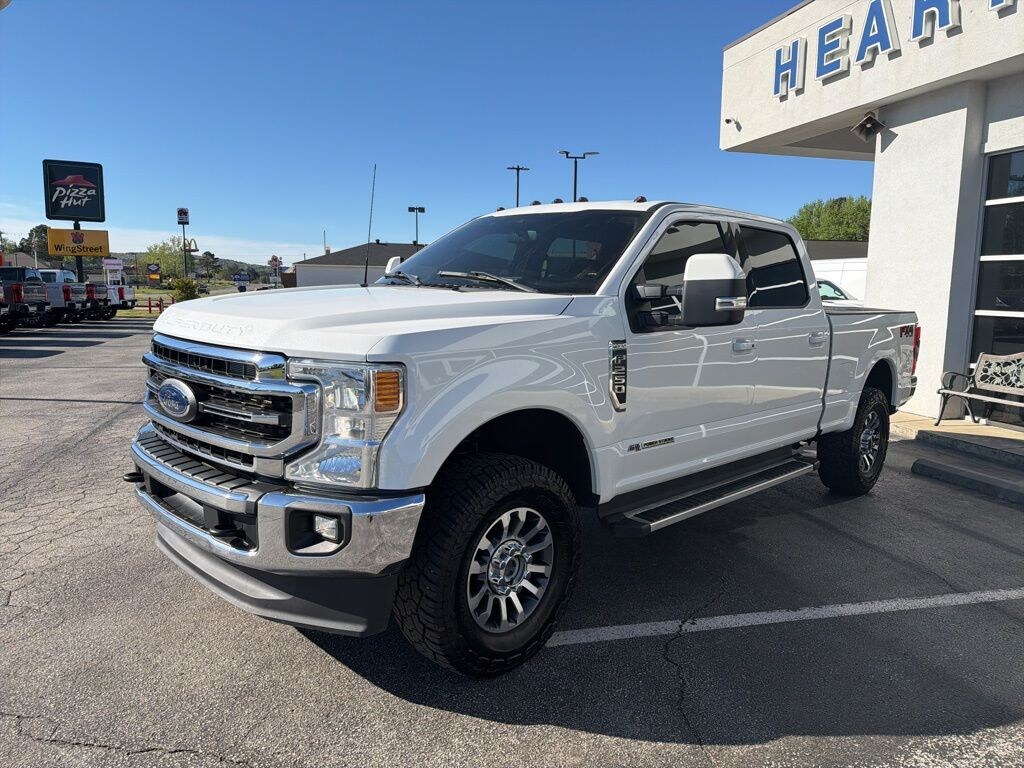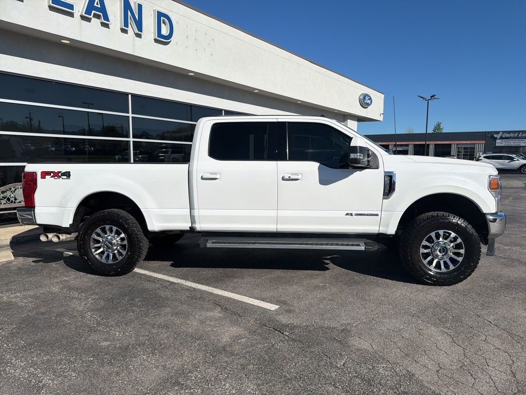 This 2022 Ford F-250SD Lariat in Star White Metallic Tri-Coat comes with the following features: Power Stroke 6.7L V8 DI 32V OHV Turbodiesel 10-Speed Automatic 4WD FX4 Off-Road Package (Hill Descent Control, Off-Road Specifically Tuned Shock Absorbers, and Unique FX4 Off-Road Box Decal), GVWR: 10,000 lb Payload Package, Lariat Ultimate Package (Ambient Lighting - Fixed Color, Easy Entry®/Exit Memory Driver's Seat Feature, Intelligent Access w/Push-Button Start, LED Box Lighting, Memory Power-Adjustable Pedals, Power Heated/Ventilated Driver Seat w/Memory, Power Heated/Ventilated Passenger Seat, Power Telescoping/Tilt Steering Wheel/Column, PowerScope Trailer Tow Mirrors w/Memory, Remote Start System, Remote Tailgate Release, and Tailgate Step & Handle), Order Code 608A, 4WD, 10 Speakers, 4-Wheel Disc Brakes, 6" Angular Bright Polished Step Bar, ABS brakes, Adjustable pedals, Advanced Security Pack Inclination Sensor Removal, Air Conditioning, All-Weather Floor Mats, Alloy wheels, AM/FM radio: SiriusXM with 360L, Auto High-beam Headlights, Auto-dimming Rear-View mirror, Automatic temperature control, Brake assist, Bumpers: chrome, Compass, Delay-off headlights, Driver door bin, Driver vanity mirror, Dual front impact airbags, Dual front side impact airbags, Electronic Stability Control, Emergency communication system: SYNC 4 911 Assist, Exterior Parking Camera Rear, Flow-Through Console, Front anti-roll bar, Front Bucket Seats, Front Center Armrest, Front dual zone A/C, Front fog lights, Front Leather Seating Surfaces 40/Console/40, Front reading lights, Fully automatic headlights, Heated door mirrors, Illuminated entry, Leather steering wheel, Low tire pressure warning, Navigation system: Connected Navigation, Outside temperature display, Overhead airbag, Overhead console, Panic alarm, Passenger door bin, Passenger vanity mirror, Power door mirrors, Power driver seat, Power passenger seat, Power steering, Power windows, PowerScope Trailer Tow Mirrors w/Heat, Radio data system, Radio: B&O Sound System by Bang & Olufsen, Rear Parking Sensors, Rear reading lights, Rear seat center armrest, Rear step bumper, Rear window defroster, Remote keyless entry, Security system, SiriusXM Radio w/360L, Speed control, Split folding rear seat, Steering wheel mounted audio controls, SYNC 4 w/Enhanced Voice Recognition, Tachometer, Telescoping steering wheel, Tilt steering wheel, Traction control, Trip computer, Turn signal indicator mirrors, Variably intermittent wipers, and Wheels: 18" Bright Machined Cast Aluminum. 4WD.