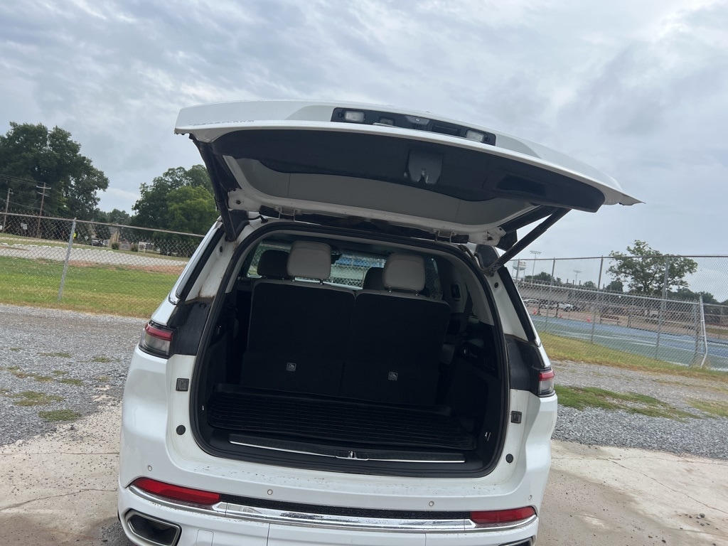 This 2023 Jeep Grand Cherokee L Overland in Bright White Clearcoat comes with the following features: 3.6L V6 24V VVT 8-Speed Automatic 4WD Quick Order Package 22N, 10 Speakers, 3.45 Rear Axle Ratio, 3rd row seats: split-bench, 4-Wheel Disc Brakes, ABS brakes, Active Noise Control System, Adaptive suspension, Air Conditioning, Alloy wheels, AM/FM radio: SiriusXM with 360L, Anti-whiplash front head restraints, Audio memory, Auto High-beam Headlights, Auto-dimming door mirrors, Auto-dimming Rear-View mirror, Auto-leveling suspension, Automatic temperature control, Brake assist, Bumpers: body-color, Compass, Delay-off headlights, Driver door bin, Driver vanity mirror, Dual front impact airbags, Dual front side impact airbags, Electronic Stability Control, Emergency communication system, Four wheel independent suspension, Front anti-roll bar, Front Bucket Seats, Front Center Armrest w/Storage, Front dual zone A/C, Front fog lights, Front License Plate Bracket, Front reading lights, Fully automatic headlights, Garage door transmitter, Heated door mirrors, Heated front seats, Heated rear seats, Heated steering wheel, Illuminated entry, Knee airbag, Low tire pressure warning, Memory seat, Nappa Leather Seats, Navigation System, Normal Duty Suspension, Occupant sensing airbag, Outside temperature display, Overhead airbag, Overhead console, Panic alarm, Passenger door bin, Passenger vanity mirror, Power door mirrors, Power driver seat, Power Fold Seatbacks, Power Liftgate, Power moonroof, Power passenger seat, Power steering, Power windows, Radio data system, Radio: Uconnect 5 Nav w/10.1" Display, Rain sensing wipers, Rear air conditioning, Rear anti-roll bar, Rear reading lights, Rear window defroster, Rear window wiper, Reclining 3rd row seat, Remote keyless entry, Security system, Speed control, Speed-Sensitive Wipers, Split folding rear seat, Spoiler, Steering wheel memory, Steering wheel mounted audio controls, Tachometer, Telescoping steering wheel, Tilt steering wheel, Traction control, Trip computer, Turn signal indicator mirrors, Variably intermittent wipers, Ventilated front seats, Voltmeter, and Wheels: 20" x 8.5" Machined Face Aluminum.