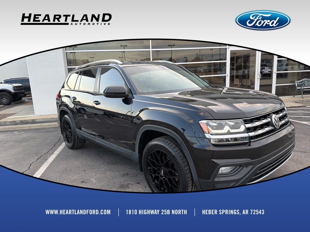 This 2019 Volkswagen Atlas 3.6L V6 SE in Black comes with the following features: 3.6L VR6 8-Speed Automatic with Tiptronic AWD 18" 5-Spoke Wheels, 3.60 Axle Ratio, 3rd row seats: split-bench, 4-Wheel Disc Brakes, 8 Speakers, ABS brakes, Air Conditioning, Alloy wheels, AM/FM radio: SiriusXM, Automatic temperature control, Brake assist, Bumpers: body-color, Compass, Delay-off headlights, Driver door bin, Driver vanity mirror, Dual front impact airbags, Dual front side impact airbags, Electronic Stability Control, Emergency communication system: VW Car-Net services (capabilities require enrollment or subscription), Exterior Parking Camera Rear, Forward collision: FCW w/Autonomous Emergency Braking mitigation, Four wheel independent suspension, Front anti-roll bar, Front Bucket Seats, Front Center Armrest, Front dual zone A/C, Front fog lights, Front reading lights, Heated Comfort Front Bucket Seats, Heated door mirrors, Heated front seats, Illuminated entry, Low tire pressure warning, Occupant sensing airbag, Outside temperature display, Overhead airbag, Overhead console, Panic alarm, Passenger door bin, Passenger vanity mirror, Power door mirrors, Power driver seat, Power steering, Power windows, Radio data system, Radio: Composition Media 8.0" Touchscreen, Rain sensing wipers, Rear air conditioning, Rear anti-roll bar, Rear reading lights, Rear seat center armrest, Rear window defroster, Rear window wiper, Remote CD player, Remote keyless entry, Roof rack: rails only, Security system, Speed control, Speed-sensing steering, Split folding rear seat, Spoiler, Standard Suspension, Steering wheel mounted audio controls, Tachometer, Telescoping steering wheel, Tilt steering wheel, Traction control, Trip computer, Turn signal indicator mirrors, V-Tex Leatherette Seating Surfaces, and Variably intermittent wipers.
